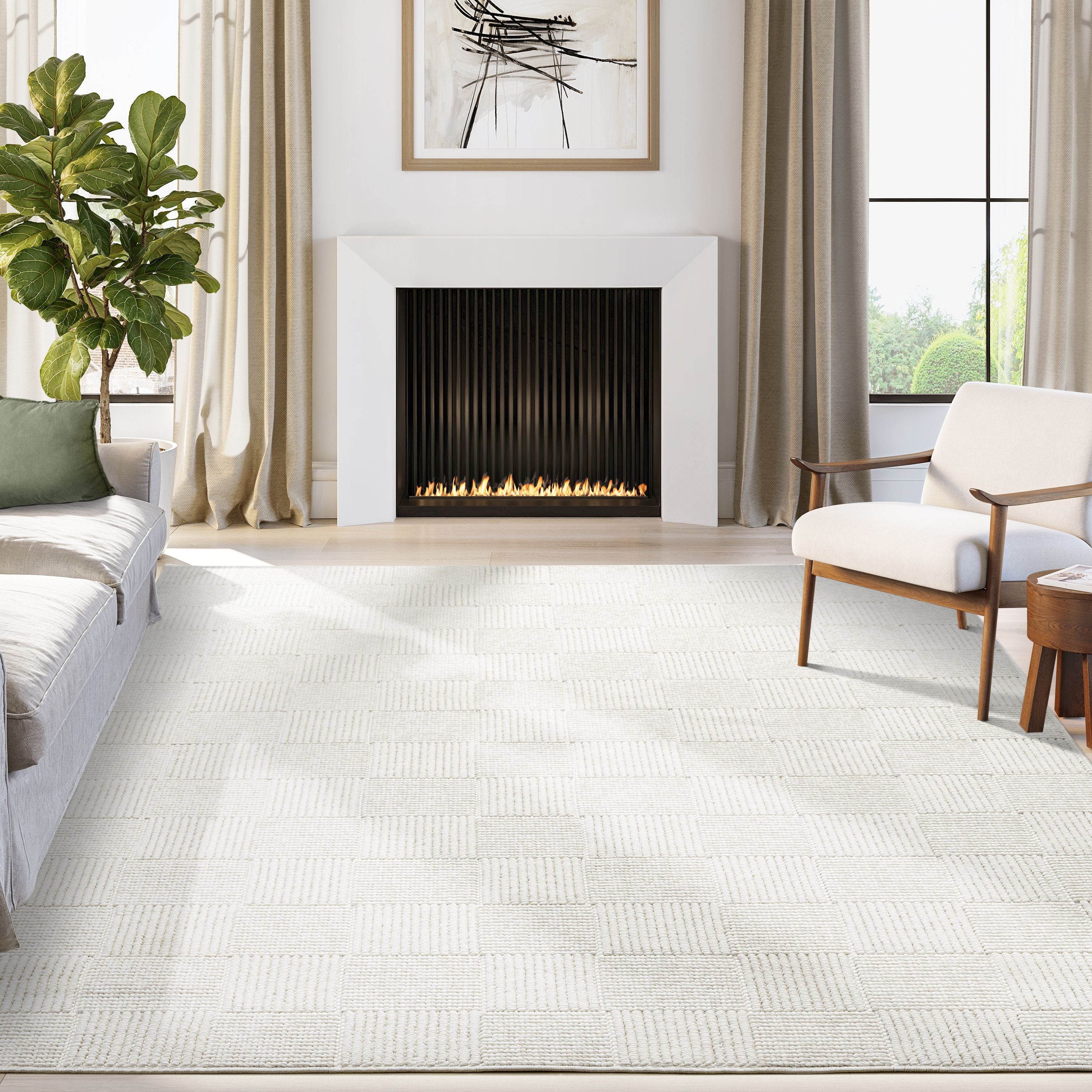 A modern take on classic pattern, this area rug features a tonal checkerboard design with subtle raised texture. Woven in soft, neutral tones, its clean lines and dimensional surface add quiet sophistication to any space. Perfect for layering or standing alone, it brings balance and texture to contemporary interiors.