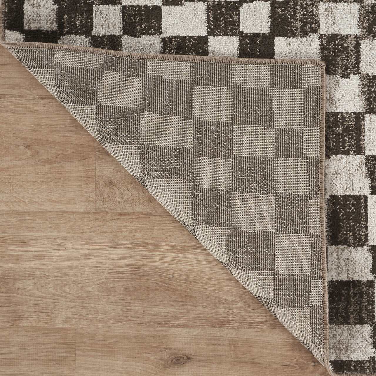 Vivienne Washable Checkered Brown Rug